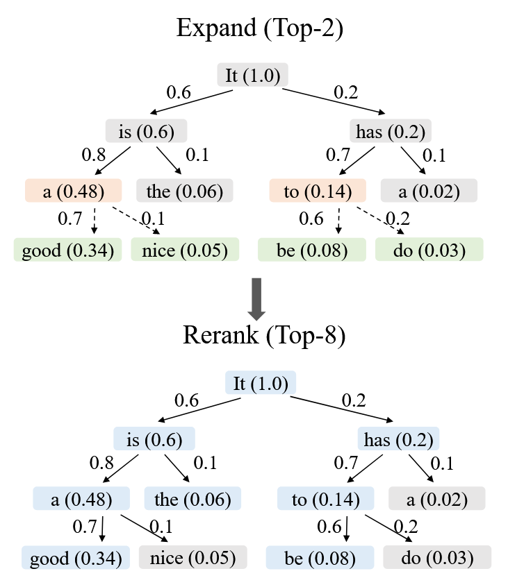对所有 draft token 重新排序,并选择具有最高值的前 m 个 token。